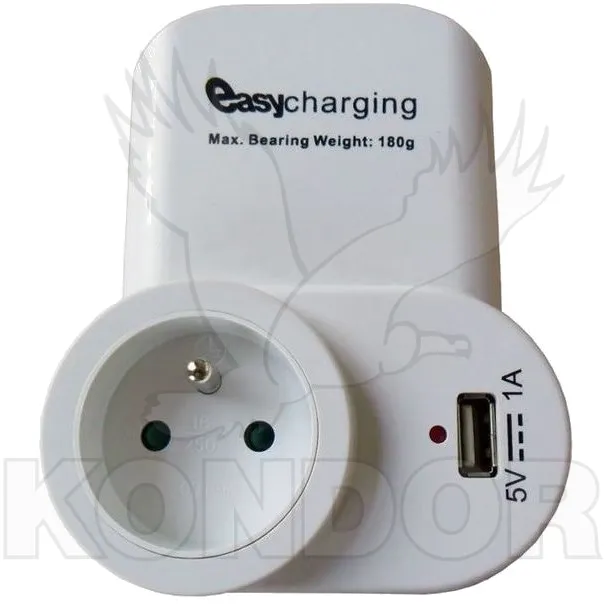Nabíjející USB adaptér s průběžnou zásuvkou, který je ideální pro dobíjení multimediálních zařízení. Výrobek je bílé barvy.