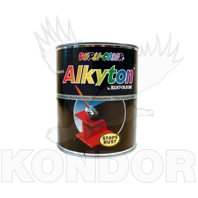 Kovářská antikorozní alkyd-uretanová barva ALKYTON 0,75l se používá jako základní i vrchní barva. Vysoký obsah kovových pigmentů vytváří atraktivní, matný, drsný povrch s kovovými odlesky. Barva je odolná proti působení povětrnostních vlivů.