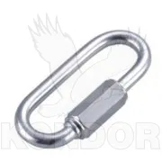 Karabina s pojistkou. Vhodná pro připevnění předmětů nebo jako rozepínací článek řetězu o síle 8 mm. Nosnost 700 kg.
