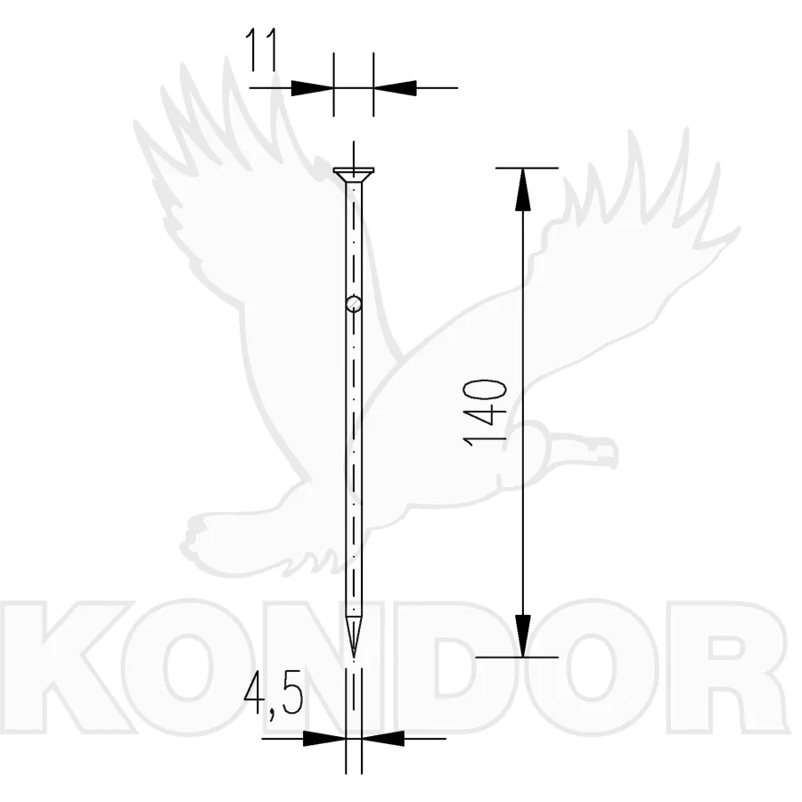 Klasické stavební hřebíky bez povrchové úpravy. Rozměry 140 x 4,5 mm. Prodej v balení po 5 kg (přibližně 225 ks).