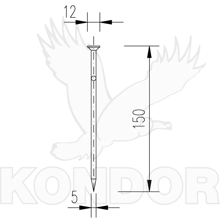 Klasické stavební hřebíky bez povrchové úpravy. Rozměry 150 x 5 mm. Prodej v balení po 5 kg (přibližně 210 ks).