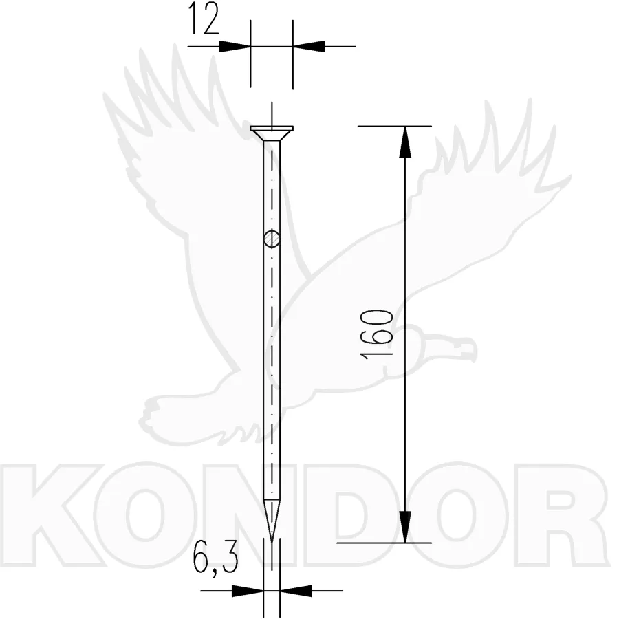Klasické stavební hřebíky bez povrchové úpravy. Rozměry 160 x 6,3 mm. Prodej v balení po 5 kg (přibližně 160 ks).