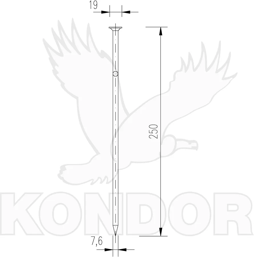 Klasické stavební hřebíky bez povrchové úpravy. Rozměry 250 x 7,6 mm. Prodej v balení po 5 kg (přibližně 55 ks).