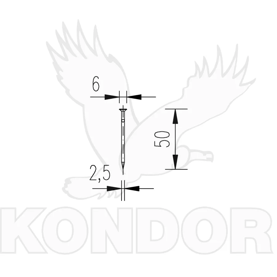 Klasické stavební hřebíky bez povrchové úpravy. Rozměry 50 x 2,5 mm. Prodej v balení po 5 kg (přibližně 2500 ks).