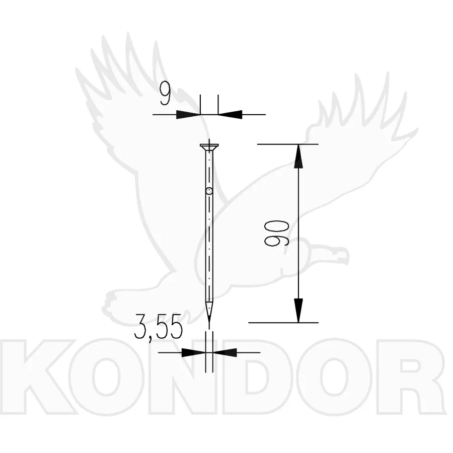 Klasické stavební hřebíky bez povrchové úpravy. Rozměry 90 x 3,55 mm. Prodej v balení po 5 kg (přibližně 700 ks).