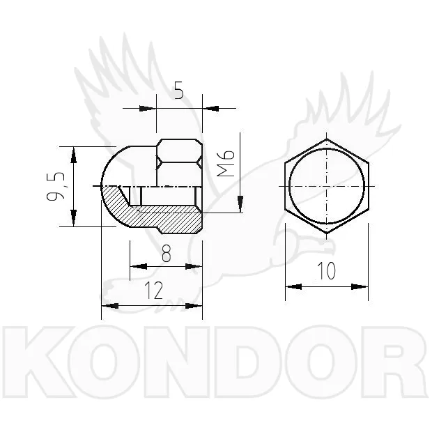 Pozinkovaná uzavřená matice. Přimontování pomocí klíče. Průměr M 6.