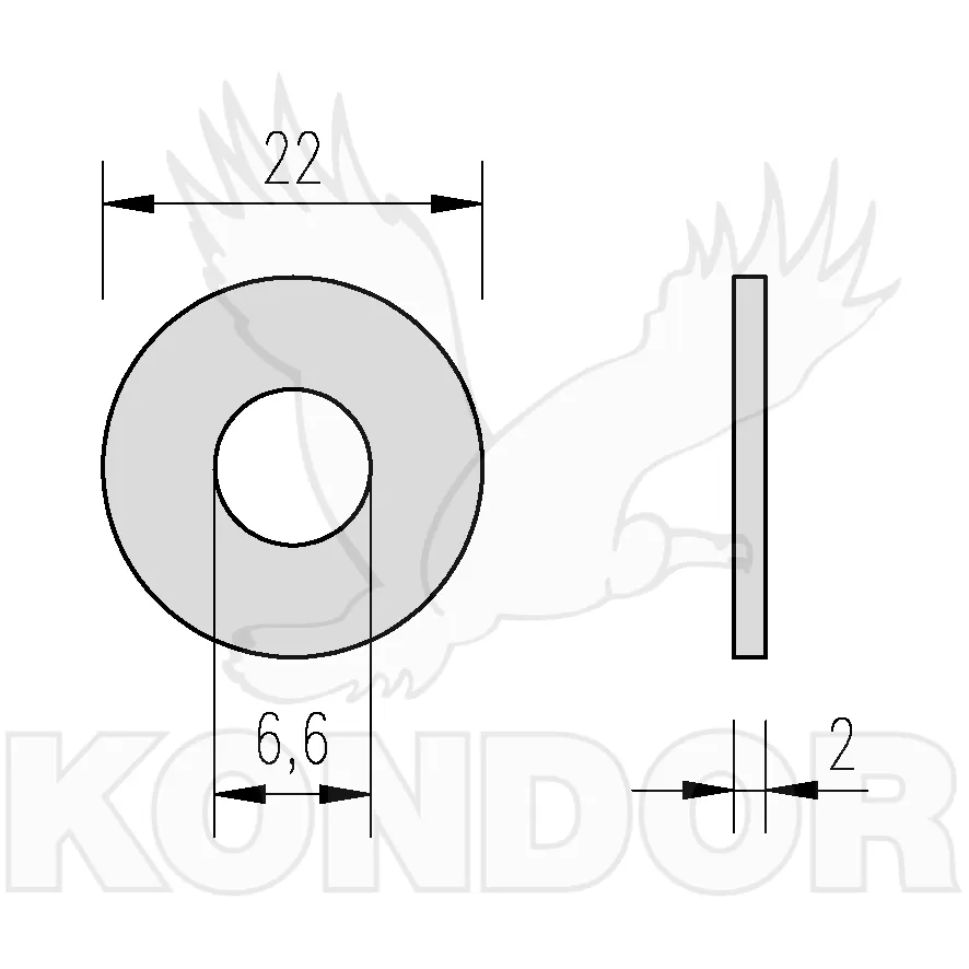 Velkoplošná podložka vhodná na stahování mekčích materiálů jako je např. dřevo. Materiál ocel. Průměr otvoru 6,6 mm pro šrouby a závitové tyče M 6. Celkový průměr 22 mm. Tloušťka 2 mm.