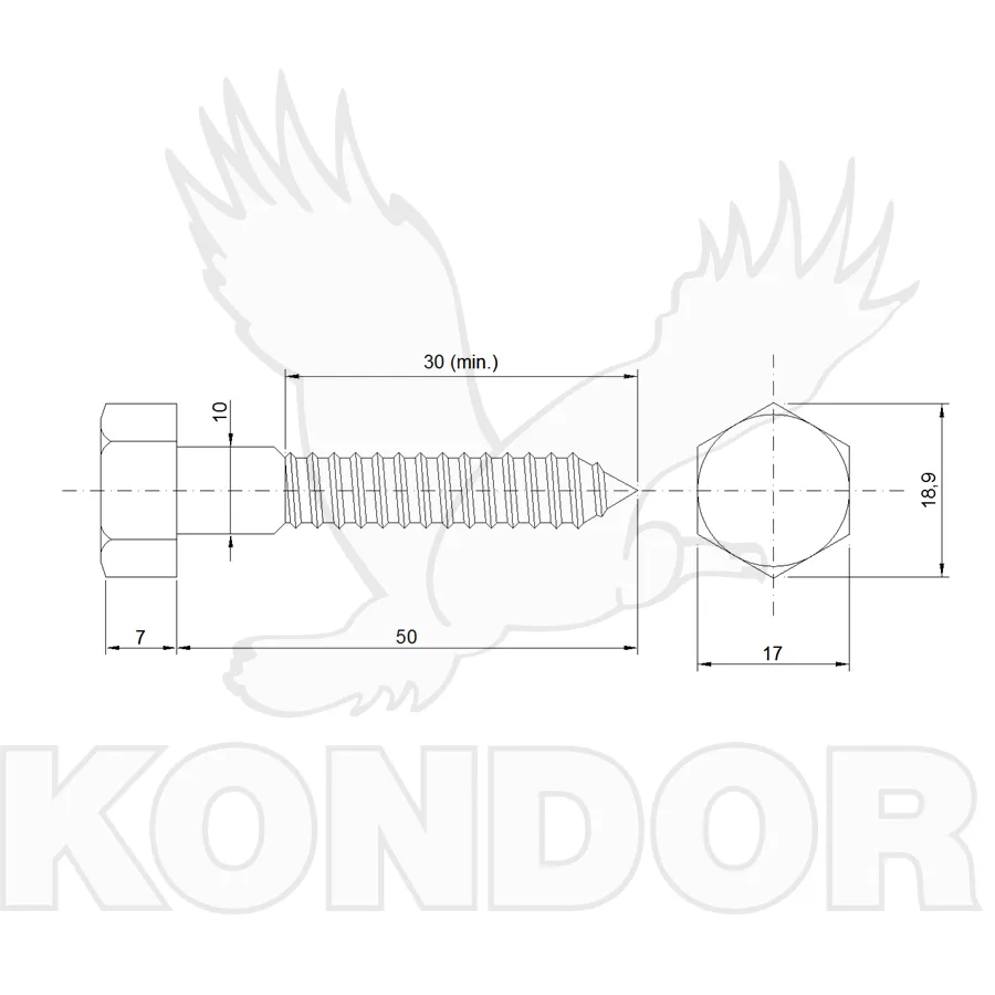 Nerezový vrut se šestihrannou hlavou. Vhodný pro stavbu dřevěných konstrukcí. Průměr 10 mm, délka 50 mm.