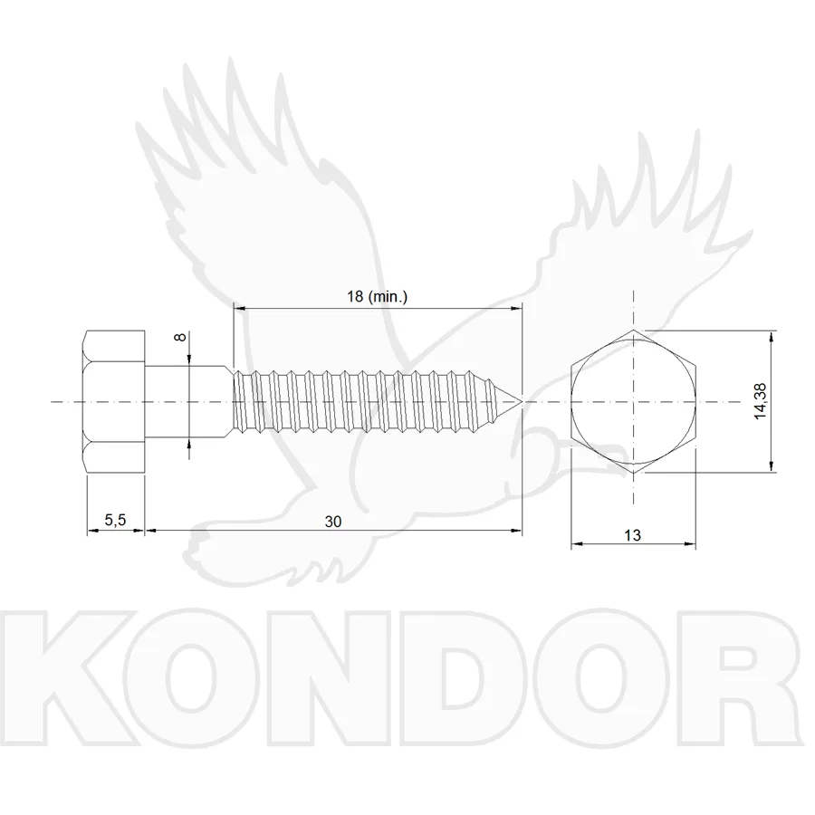 Pozinkovaný vrut se šestihrannou hlavou. Vhodný pro stavbu dřevěných konstrukcí. Průměr 8 mm, délka 30 mm.