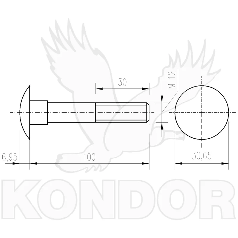 Šroub s hladkou hlavou pro široké spektrum použití. Nejčastěji používaný při montáži vrat, bran, plotů, laviček aj. Pozinkovaný materiál. Rozměry M 12 x 100 mm.