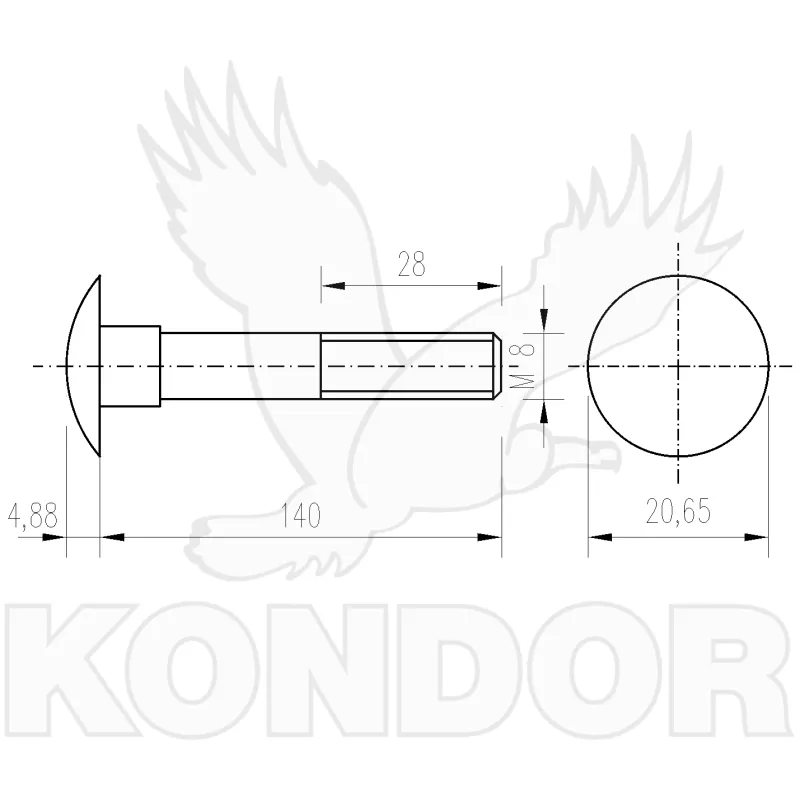 Šroub s hladkou hlavou pro široké spektrum použití. Nejčastěji používaný při montáži vrat, bran, plotů, laviček aj. Pozinkovaný materiál. Rozměry M 8 x 140 mm.