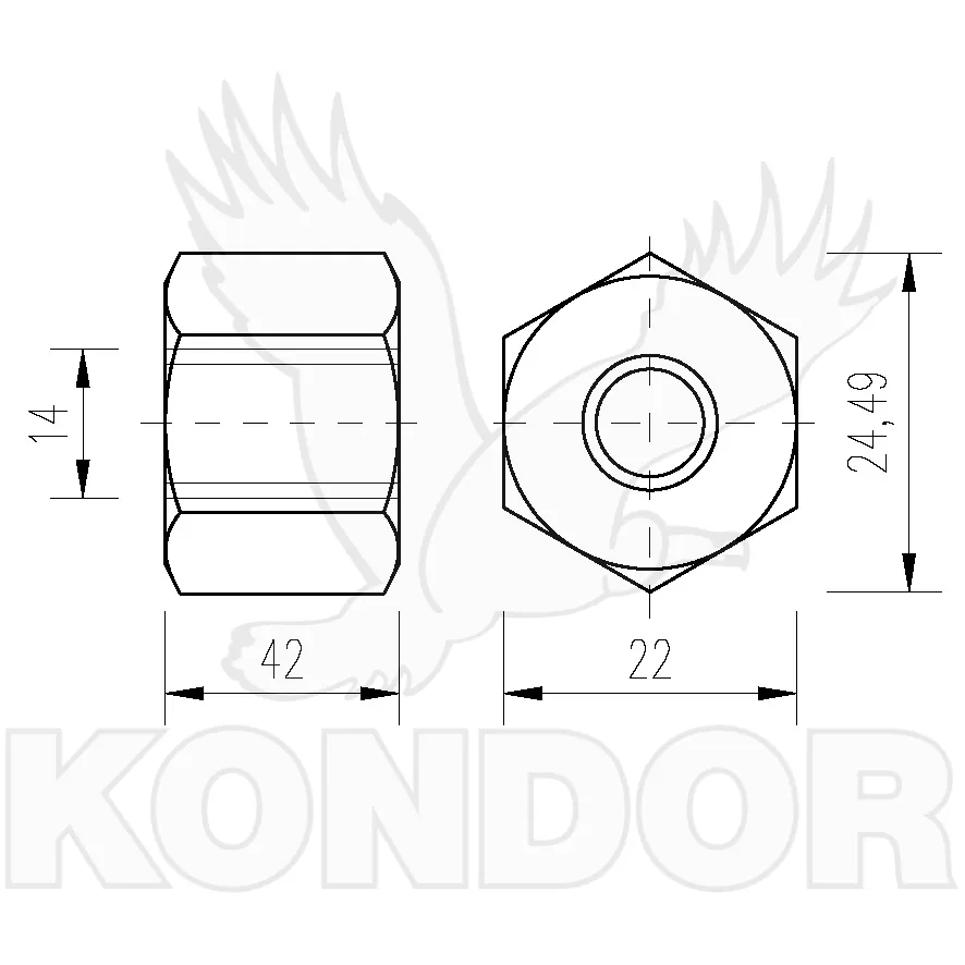 Pozinkovaná matice M 14 s prodlouženou délkou 42 mm.