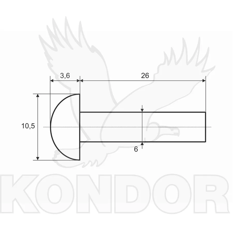 Nýt s půlkulatou hlavou. Materiál ocel bez povrchové úpravy. Rozměry 6 × 26 mm.