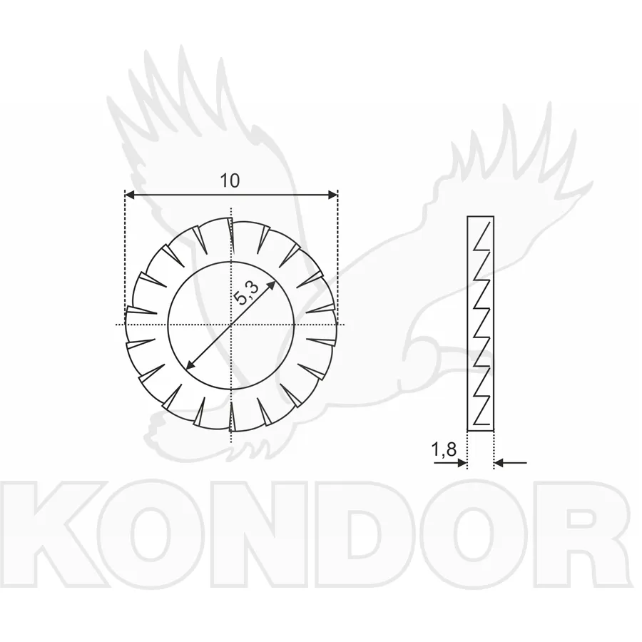 Aretační podložka vějířová pozinkovaná s vnějším ozubením.