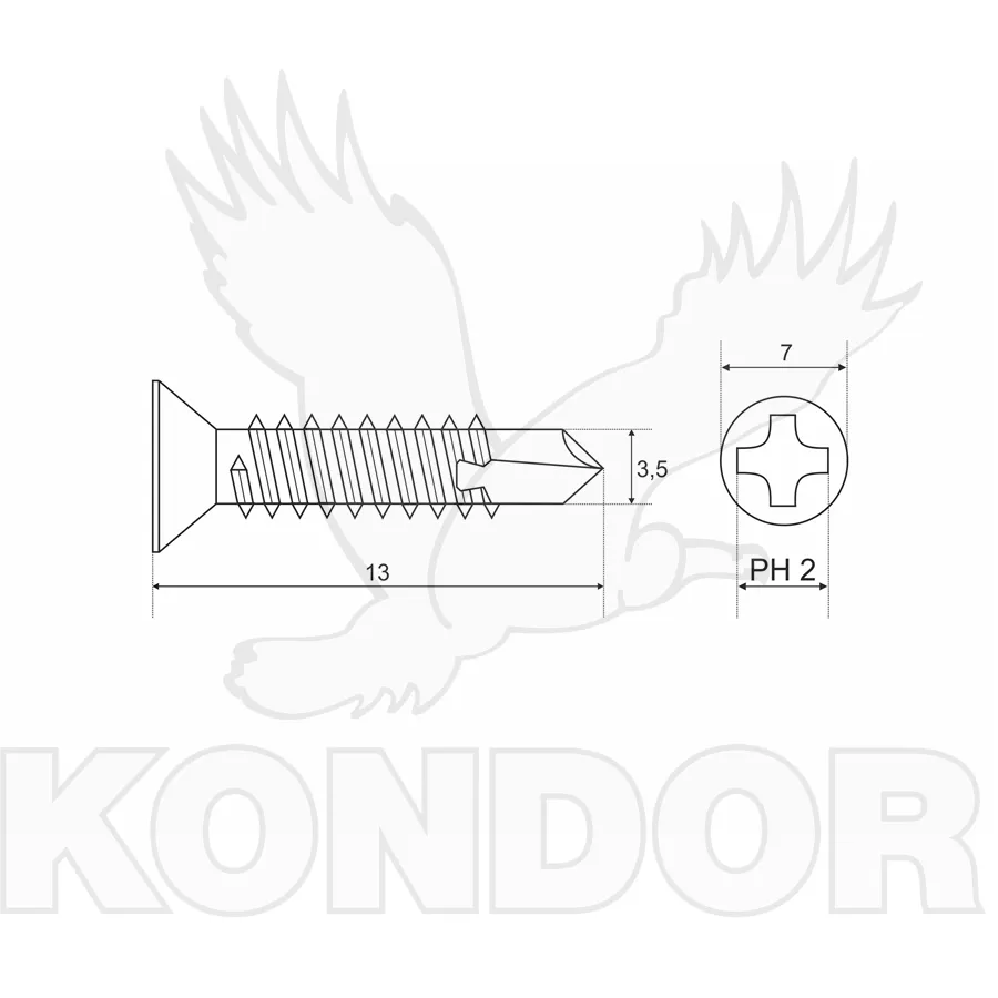Samořezný šroub do plechu s TEX hrotem (vrtáčkem) pro snadné zavrtání a zapuštěnou hlavou. Materiál pozinkovaný. Rozměry 3,5 × 13 mm.