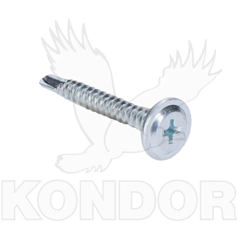Samovrtný šroub s plochou hlavou PH2 a hrotem. Povrchová úprava - bílý zinek. Vhodné do plechu.