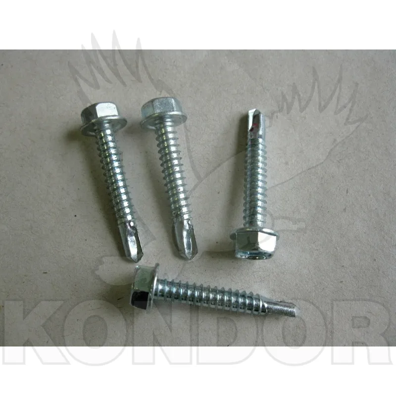 Samořezný šroub do plechu s TEX hrotem (vrtáčkem) pro snadné zavrtání a šestihrannou hlavou s límcem. Materiál pozinkovaný. Rozměry 6,3 x 38 mm.