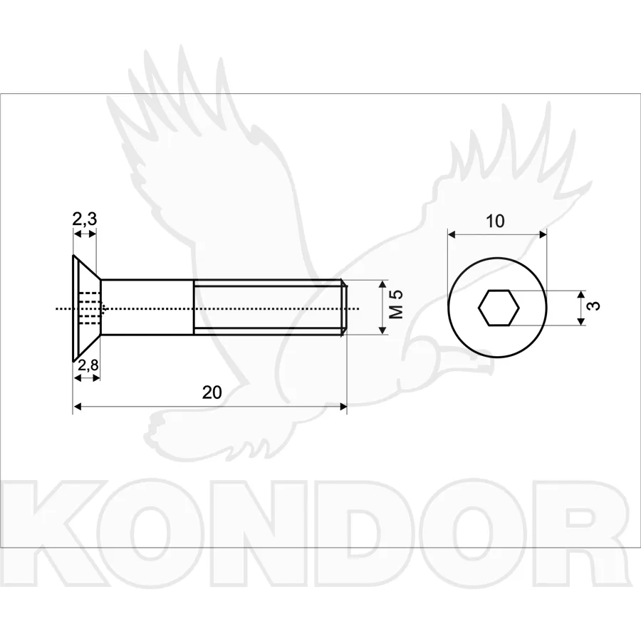 Metrický šroub s imbusovou zápustnou hlavou v pozinkovaném provedení. Rozměry M 5 × 20 mm.