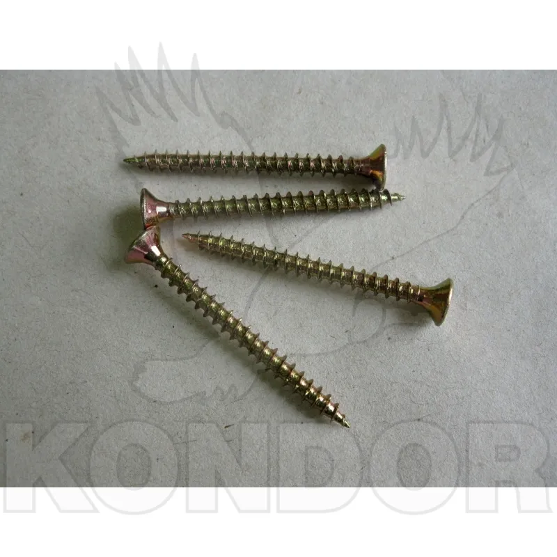 Univerzální vrut s úplným závitem a zápustnou hlavou není určen pro kov, ale pro dřevo, dřevotřísku aj. Materiál pozinkovaný. Rozměry 4 x 45 mm.