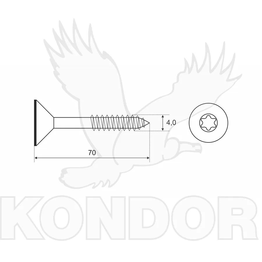 Vrut TORX T20, s částečným závitem a zápustnou hlavou
