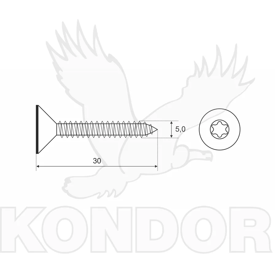 Vrut TORX T25, s celým závitem a zápustnou hlavou