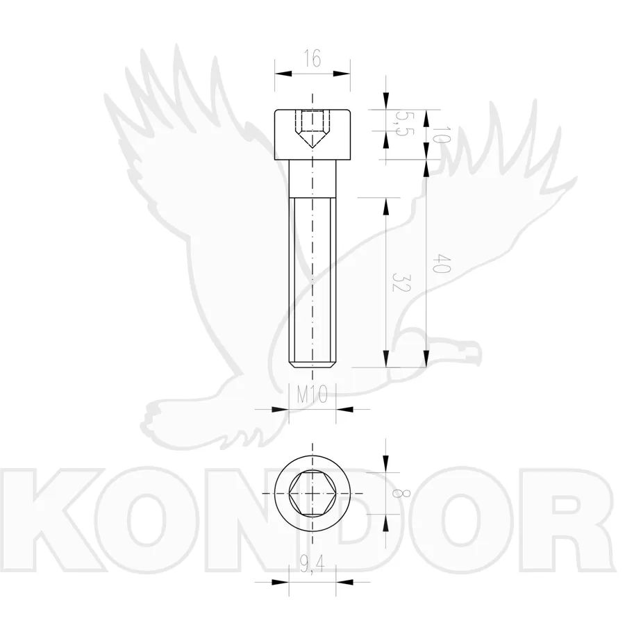 Metrický šroub s imbusovou válcovou hlavou. Materiál pozinkovaný. Pevnost 8,8. Rozměry M 10 × 40 mm.