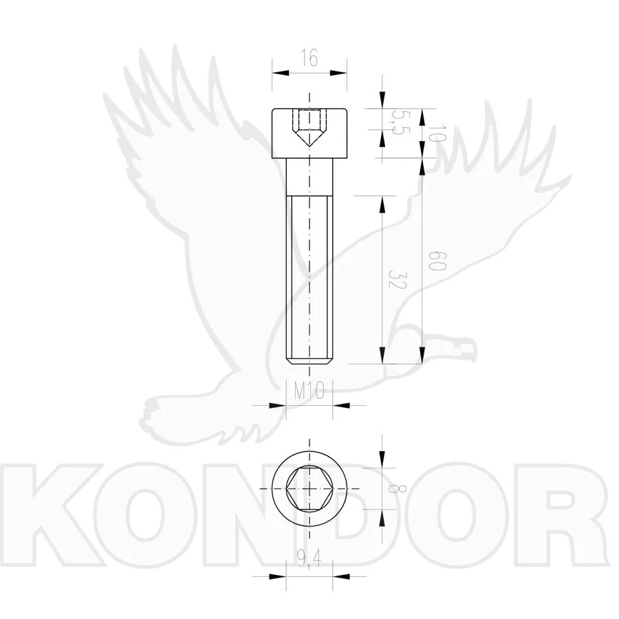 Metrický šroub s imbusovou válcovou hlavou. Materiál pozinkovaný. Pevnost 8,8. Rozměry M 10 x 60 mm.