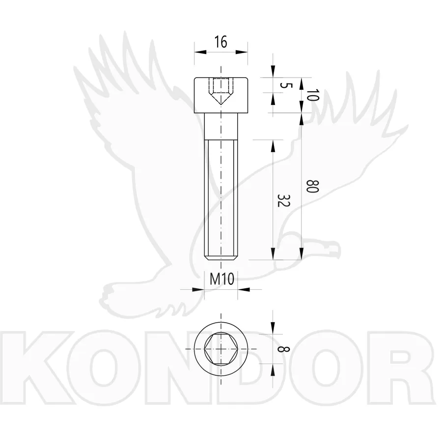 Metrický šroub s imbusovou válcovou hlavou. Materiál pozinkovaný. Pevnost 8,8. Rozměry M 10 × 80 mm.