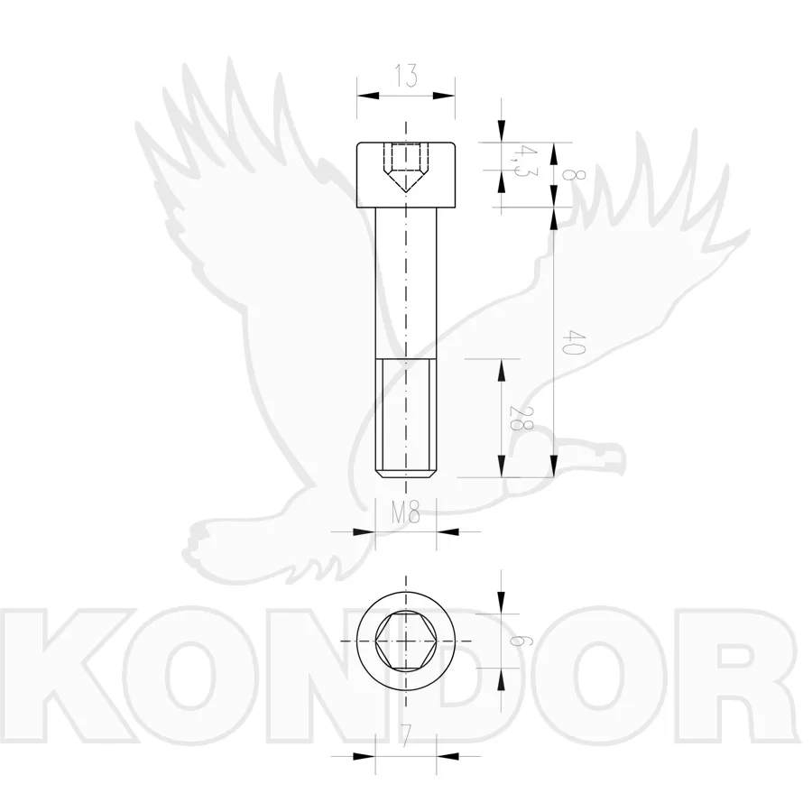 Metrický šroub s imbusovou válcovou hlavou. Materiál pozinkovaný. Pevnost 8,8. Rozměry M 8 × 40 mm.