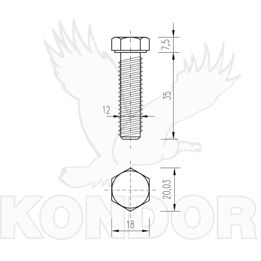 Šroub se šestihranou hlavou a celým závitem. Pevnost 8,8. Určen pro spojení materiálu. Materiál ocel. Rozměry M 12 x 35 mm.