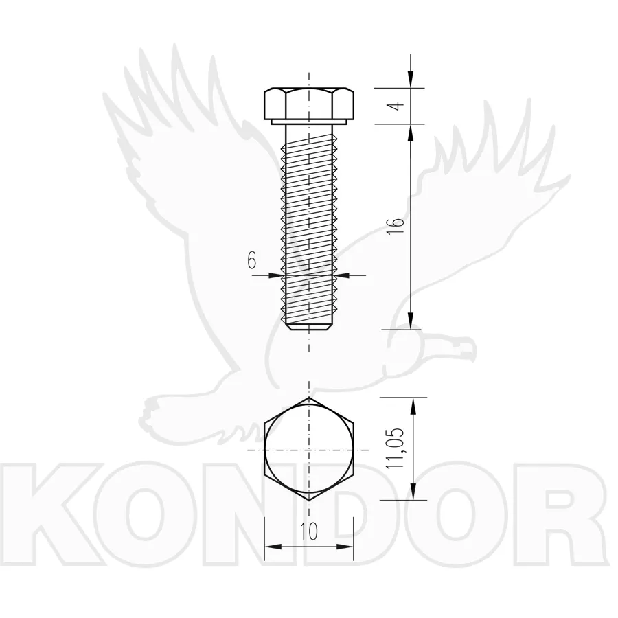 Šroub se šestihranou hlavou a celým závitem. Pevnost 8,8. Určen pro spojení materiálu. Materiál bílý pozink. Rozměry M 6 x 16 mm.