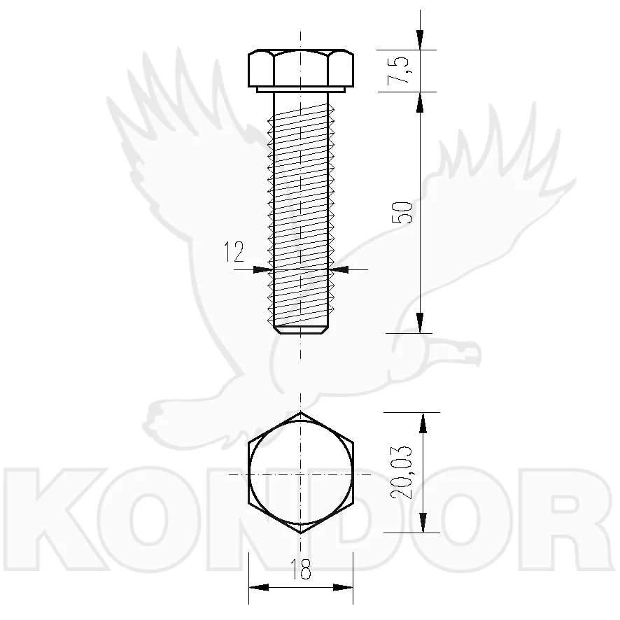Šroub se šestihranou hlavou a celým závitem. Pevnost 8,8. Určen pro spojení materiálu. Materiál bílý pozink. Rozměry M 12 x 50 mm.
