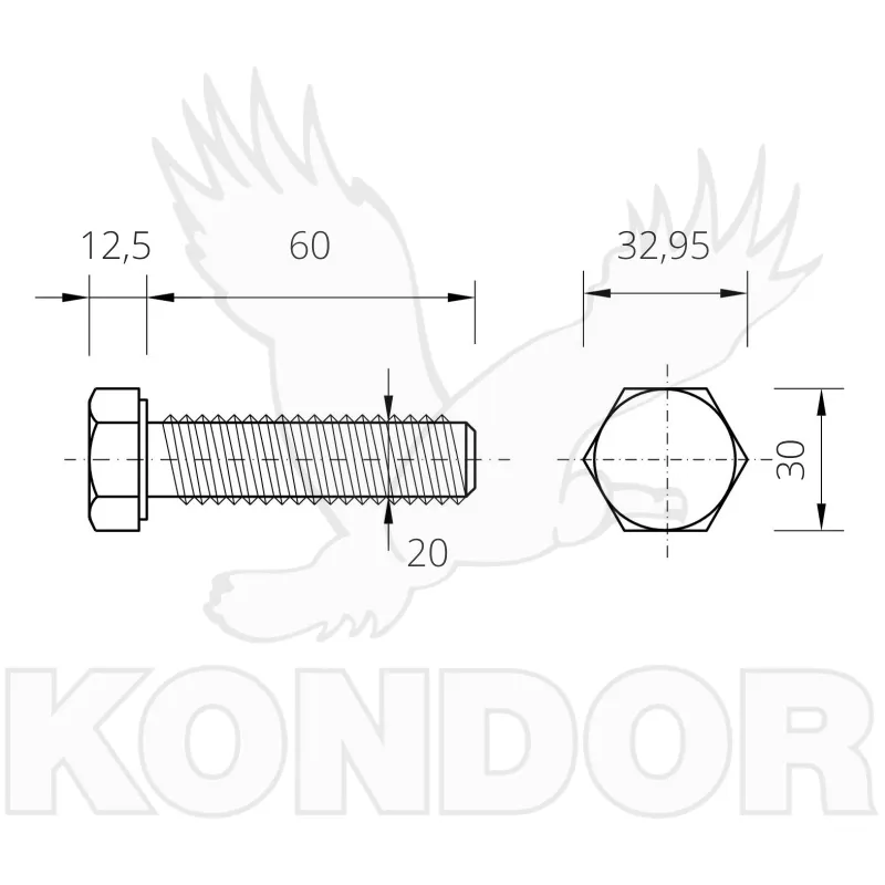Šroub se šestihranou hlavou a celým závitem. Pevnost 8,8. Určen pro spojení materiálu. Materiál bílý pozink Rozměry M 20 × 60 mm.