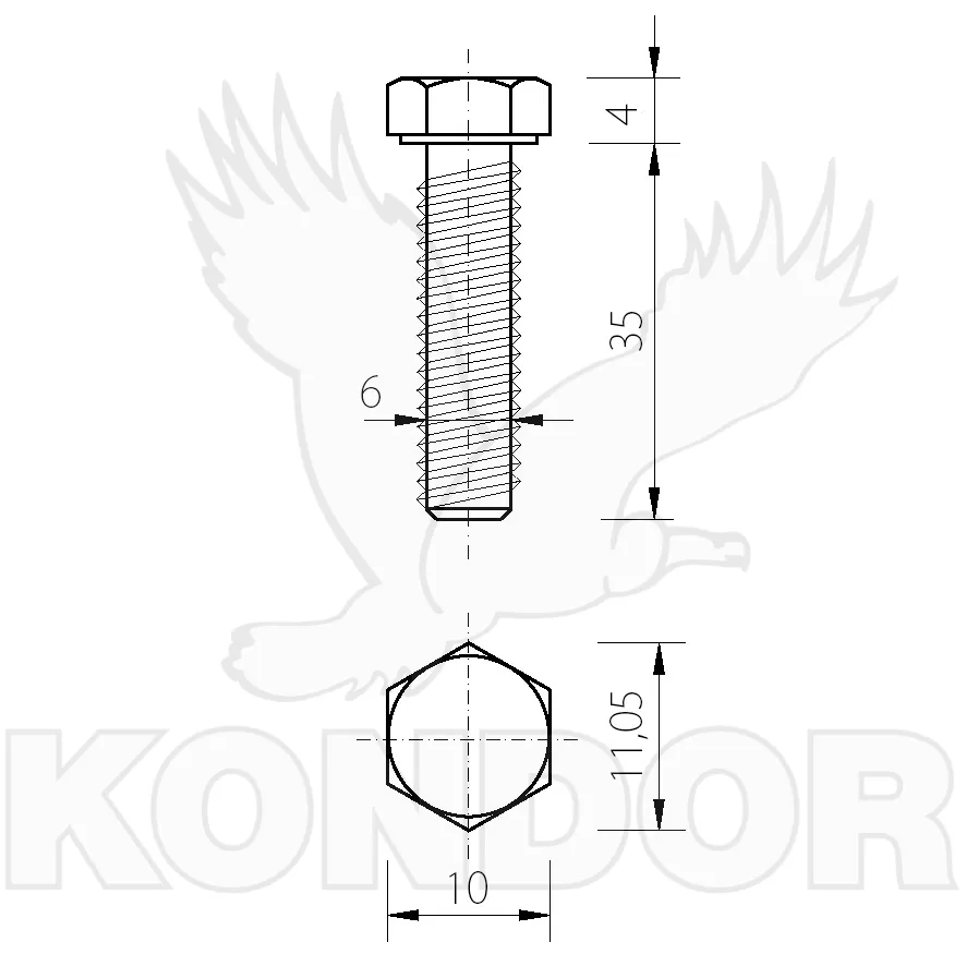 Šroub se šestihrannou hlavou a celým závitem. Pevnost 8.8. Určen pro spojení materiálu. Materiál bílý pozink. Rozměry M 6 × 35 mm.