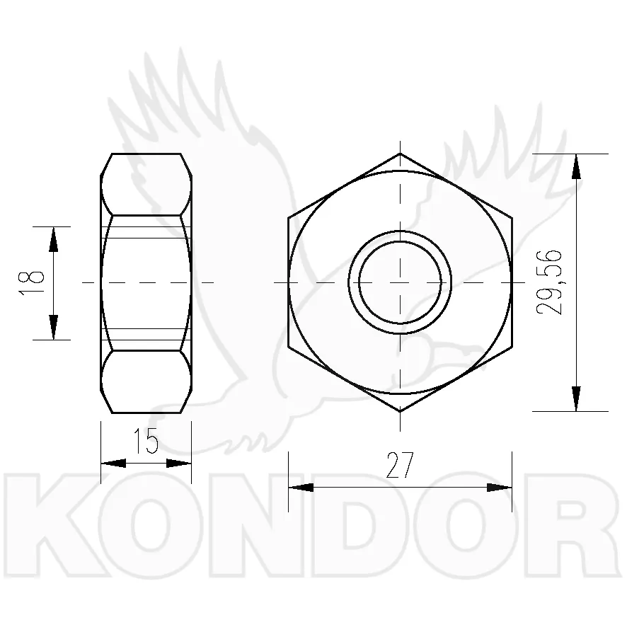 Ocelová matice M 18 bez povrchové úpravy.