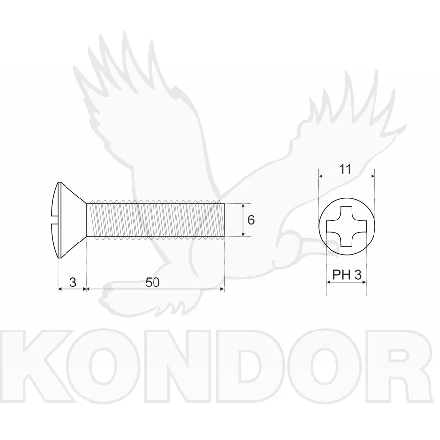 Galvanicky pozinkované šrouby M 5 × 50 se zápustnou hlavou čočkovitou, s křížovou drážkou tvaru H a pevnosti 4.8.