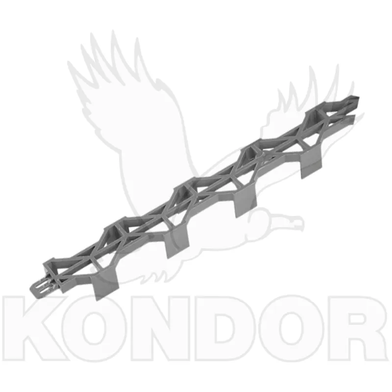 Plastová distanční lišta pro spodní výztuž s postranními výřezy na konci každé lišty je zámek, který umožňuje vytvářet nekonečný pás. Krytí 25 mm, délka 2m.