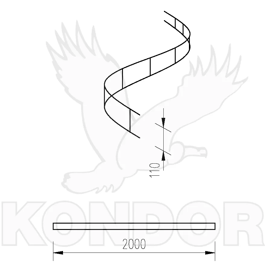Ocelová podpěra ve tvaru vlnovky pro horní výztuž betonové konstrukce.