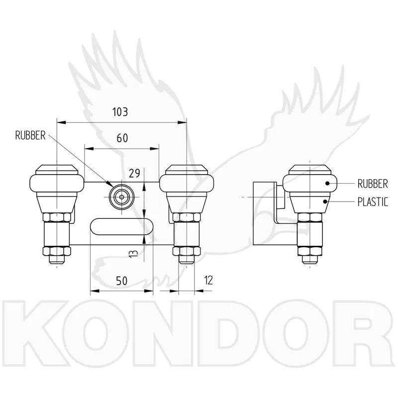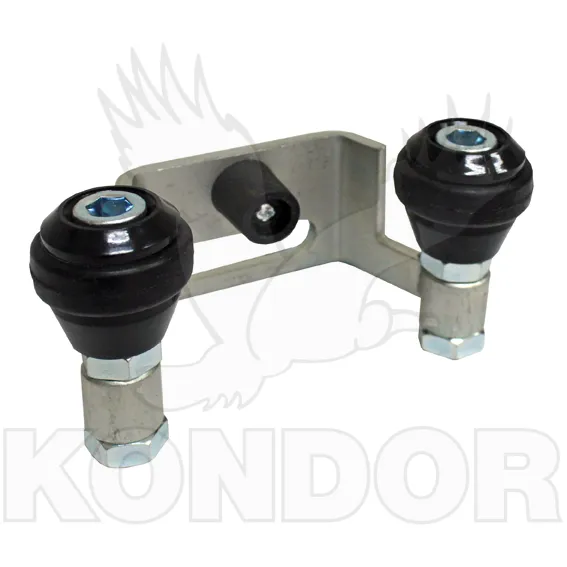 Horní koncový pozinkovaný doraz posuvné brány s naváděcími rolnami a gumovým nárazníkem. Rozměr 60 mm.