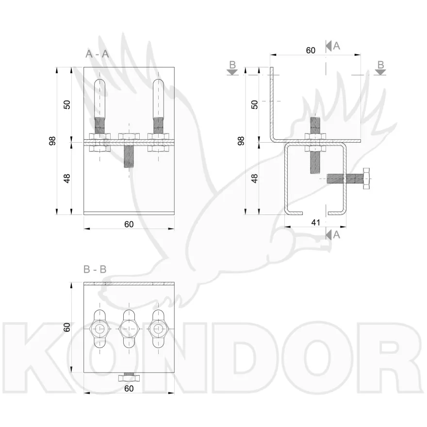 Boční pozinkovaný držák pro posuvné brány. Rozměry 33 x 34 mm.