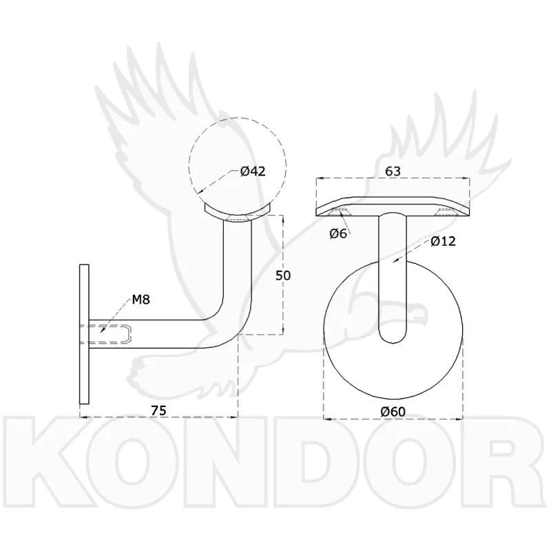 Držák madla na stěnu pro trubky o průměru 42,4 mm
