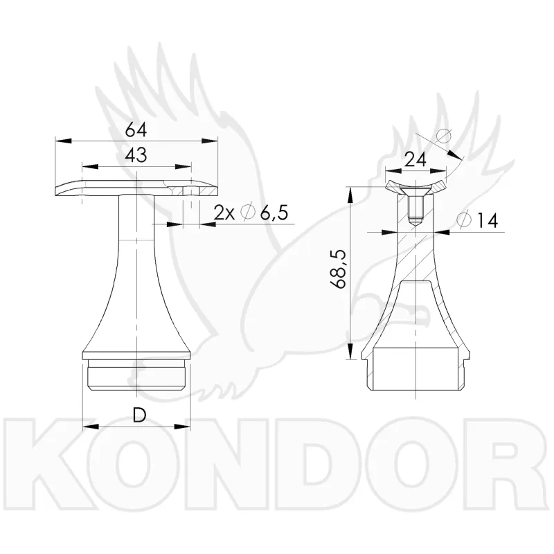 Regulovatelný nerezový držák plochécho madla. Materiál AISI 304, povrchová úprava brus.