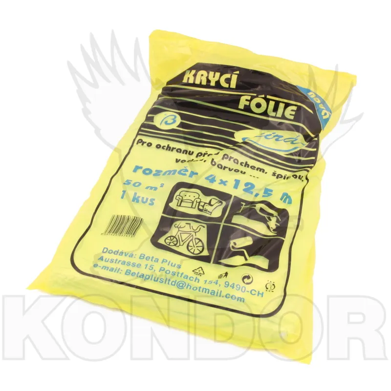 Slouží k zakrytí veškerého nábytku, oken, koberců aj. při malování. Rozměry 4 × 12,5 m.