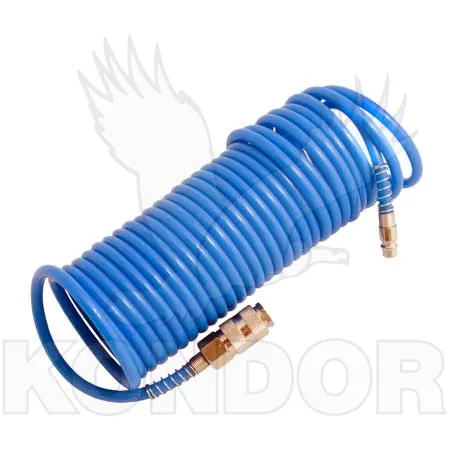 Spirálová hadice na vzduch. S koncovkami pro připojení vzduchového nářadí k rozvodu stlačeného vzduchu.