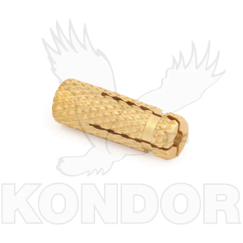 Mosazná rozpěrná hmoždinka pro metrické šrouby M 6. Malá montážní hloubka snižuje námahu při vrtání. Vhodná pro beton, předpjaté betonové desky s dutým jádrem, přírodní kámen s hutnou strukturou, plné cihly a plné vápencopískové cihly a dřevo. Určena pro předsazenou montáž. Délka hmoždinky 24 mm.
