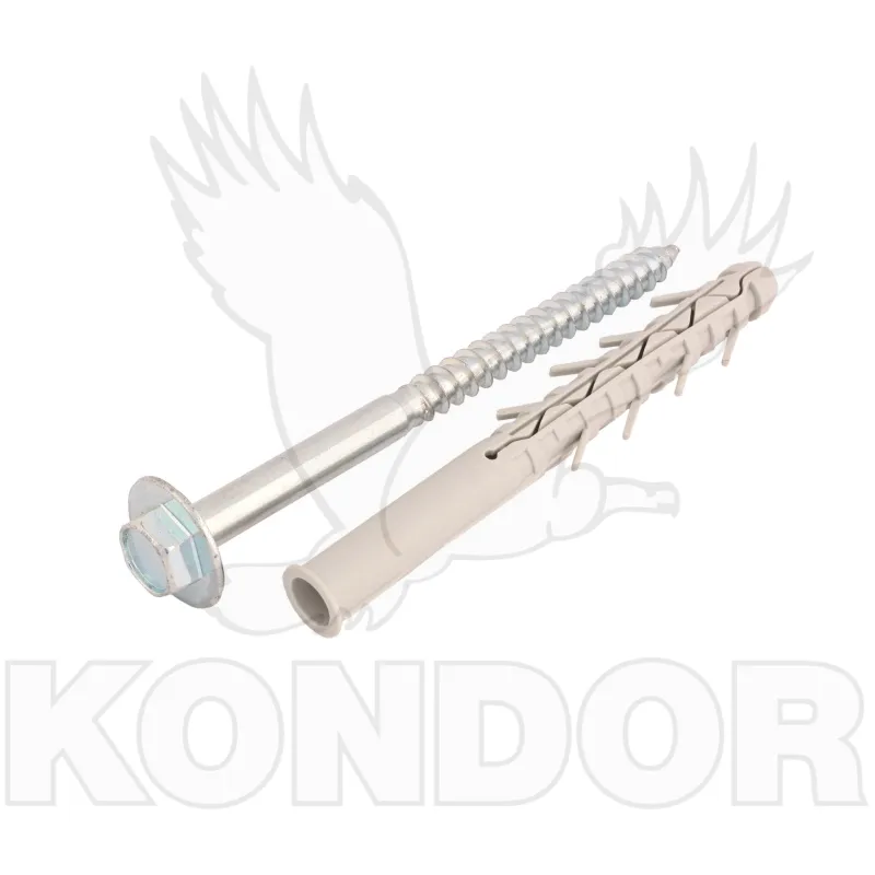 Hmoždinka TUPP univerzální s lemem a vrutem se šestihrannou hlavou a integrovanou podložkou z bíle zinkované oceli. Široká expanze umožňuje vyšší zátěžovou kapacitu. Použití pro těžké průvlakové upevnění, zejména kotvení konstrukčních rámů, lehkých kovových profilů, těžkých zařizovacích předmětů, ohřívačů vody apod.