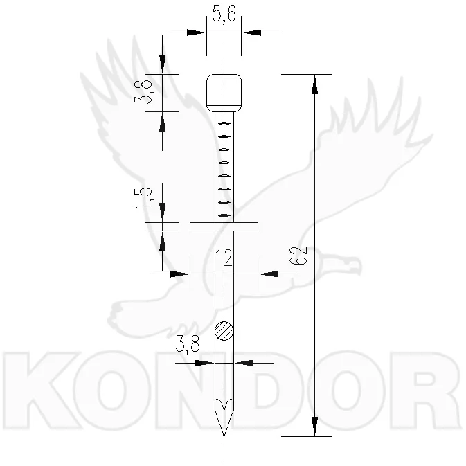 Spojovací materiál z tvrzené oceli s pozinkovaným povrchem. Vhodné do betonu, cihel aj. Doporučená aplikace pomocí nastřelovací pistole. Rozměry 62 x 3,8 mm. V balení po 100 Ks.