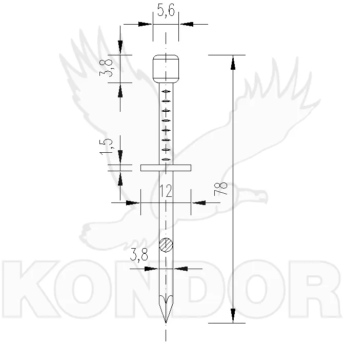 Spojovací materiál z tvrzené oceli s pozinkovaným povrchem. Vhodné do betonu, cihel aj. Doporučená aplikace pomocí nastřelovací pistole. Rozměry 78 x 3,8 mm. V balení po 100 Ks.