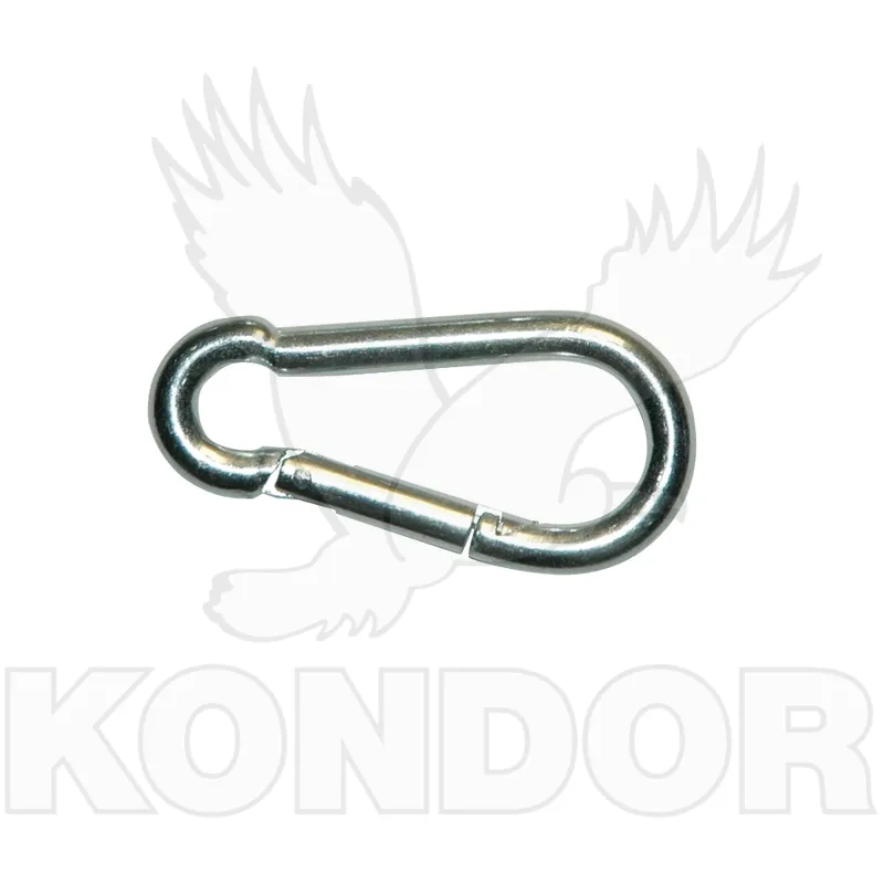 Jednoduchá karabina (hasičská karabina). Nosnost 70 kg. Velikost 40 mm, síla materiálu 4 mm.