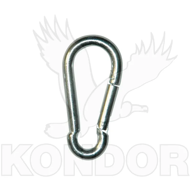Jednoduchá karabina (hasičská karabina). Nosnost 90 kg. Velikost 50 mm, síla materiálu 5 mm.